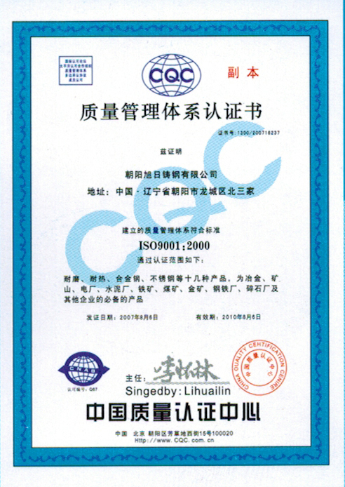 質(zhì)量管理體系證書